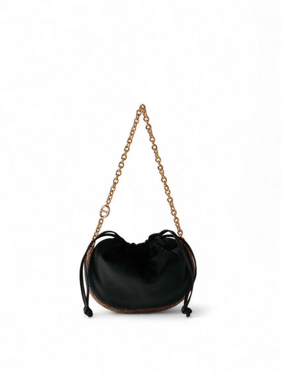 - Organizzazione: chiusura a coulisse, interno foderato in tessuto jacquard con comoda tasca aperta a parete.
