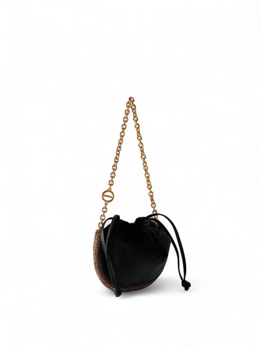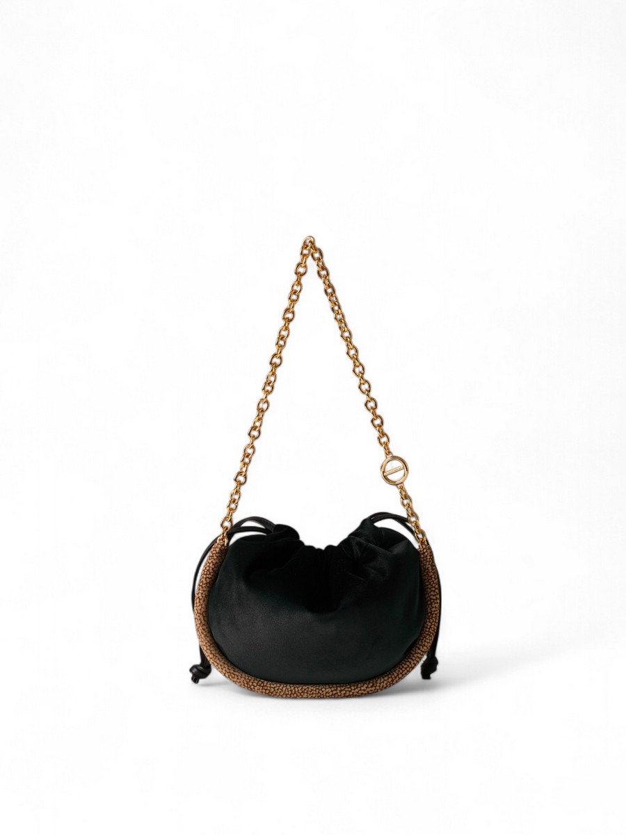 La mini bag in velluto Coquille di Borbonese è l’accessorio ideale per vestire con eleganza e raffinatezza le tue serate invernali.