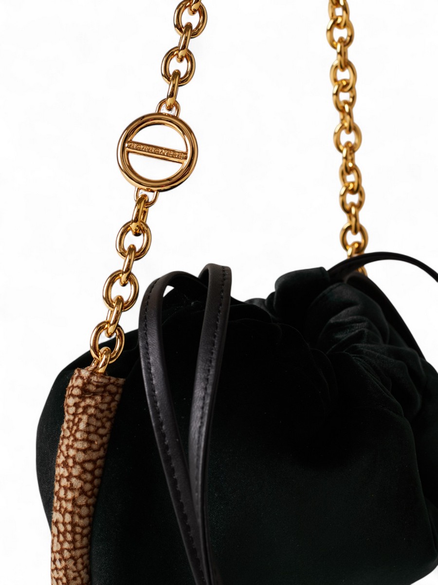 - Materiale: borsa realizzata in tessuto velluto con dettagli in pelle camoscio op.