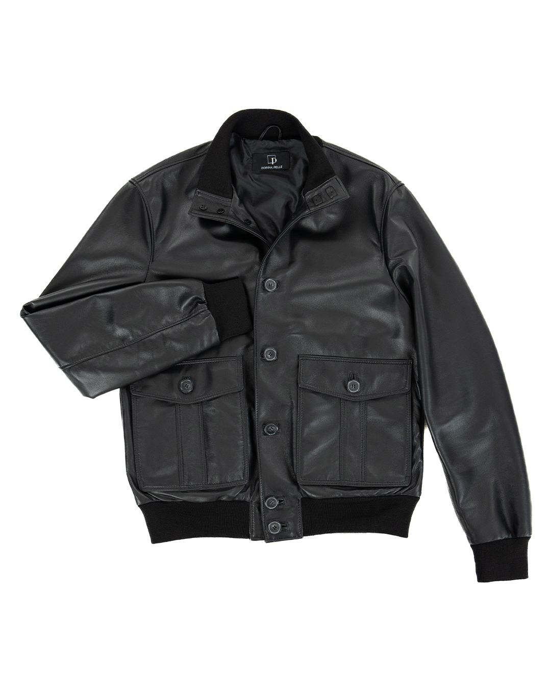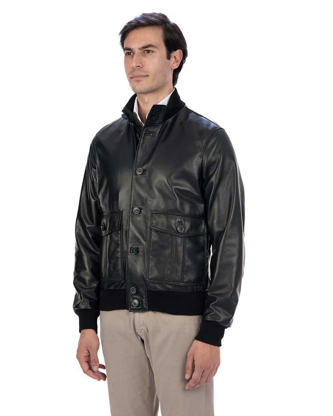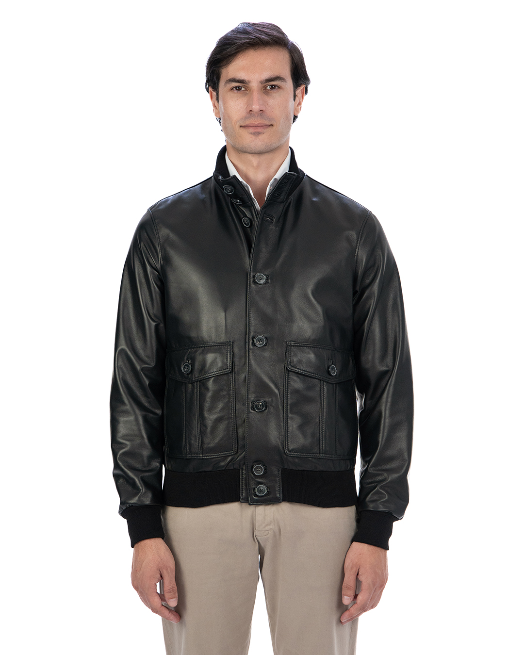 Bomber con Bottoni da Uomo in Vera Pelle Nero – Modello OLIVER