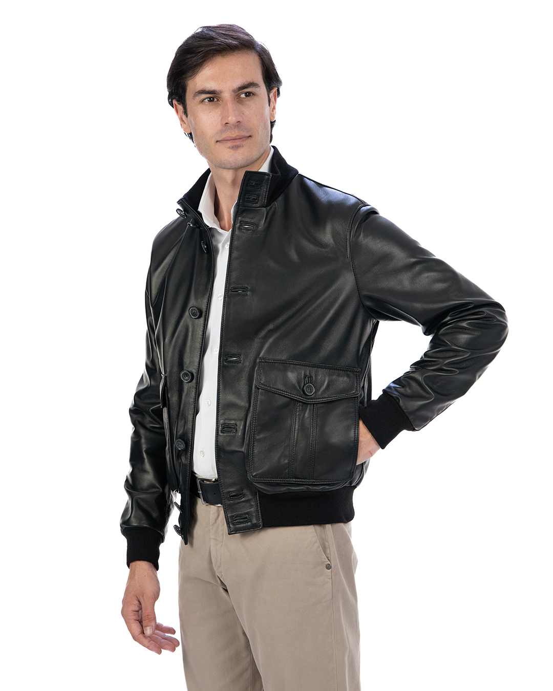 Esplora l’eleganza casual del Bomber con bottoni da uomo in vera pelle nero OLIVER. Questo capo, realizzato artigianalmente in Italia, unisce la tradizione artigianale italiana con un design moderno e versatile. Perfetto per chi cerca un bomber in pelle che unisca comfort e stile in ogni occasione, dal lavoro al tempo libero.