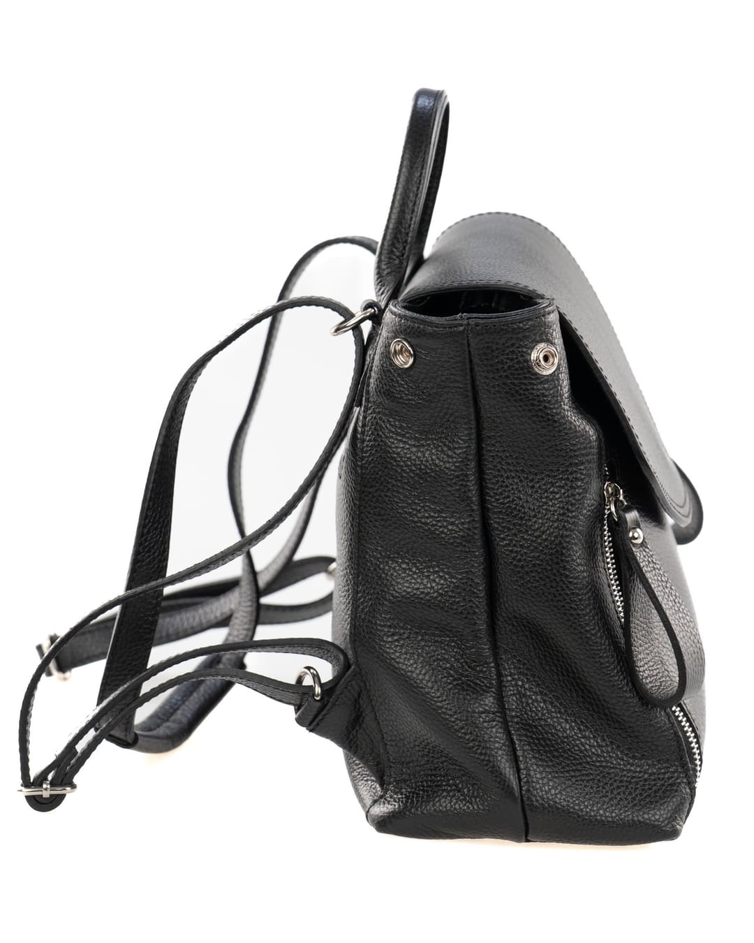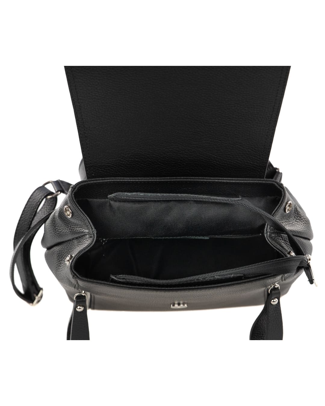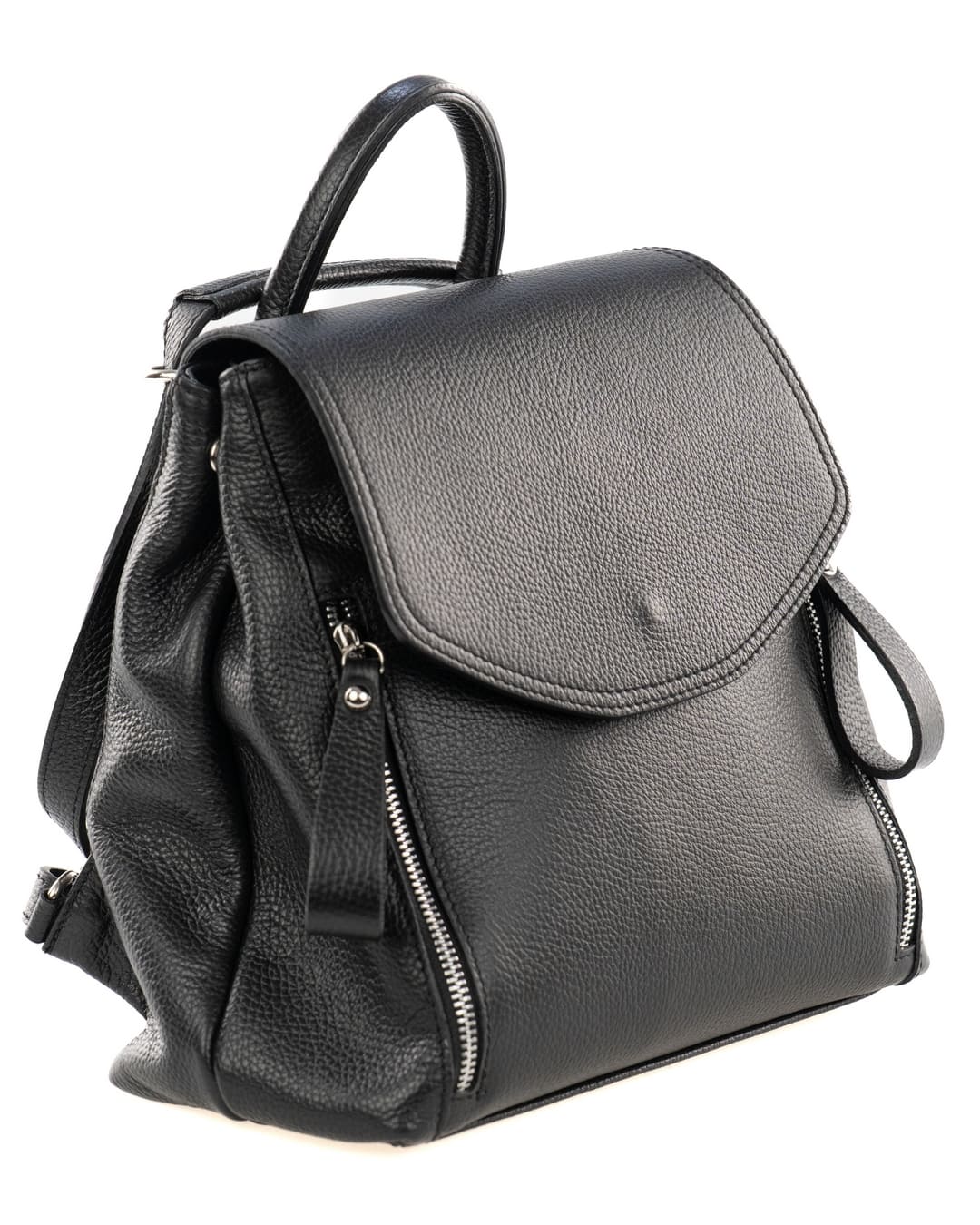 OLIVIA Zaino donna in vera pelle martellata nero con spallacci regolabili e tracolla trasformabile