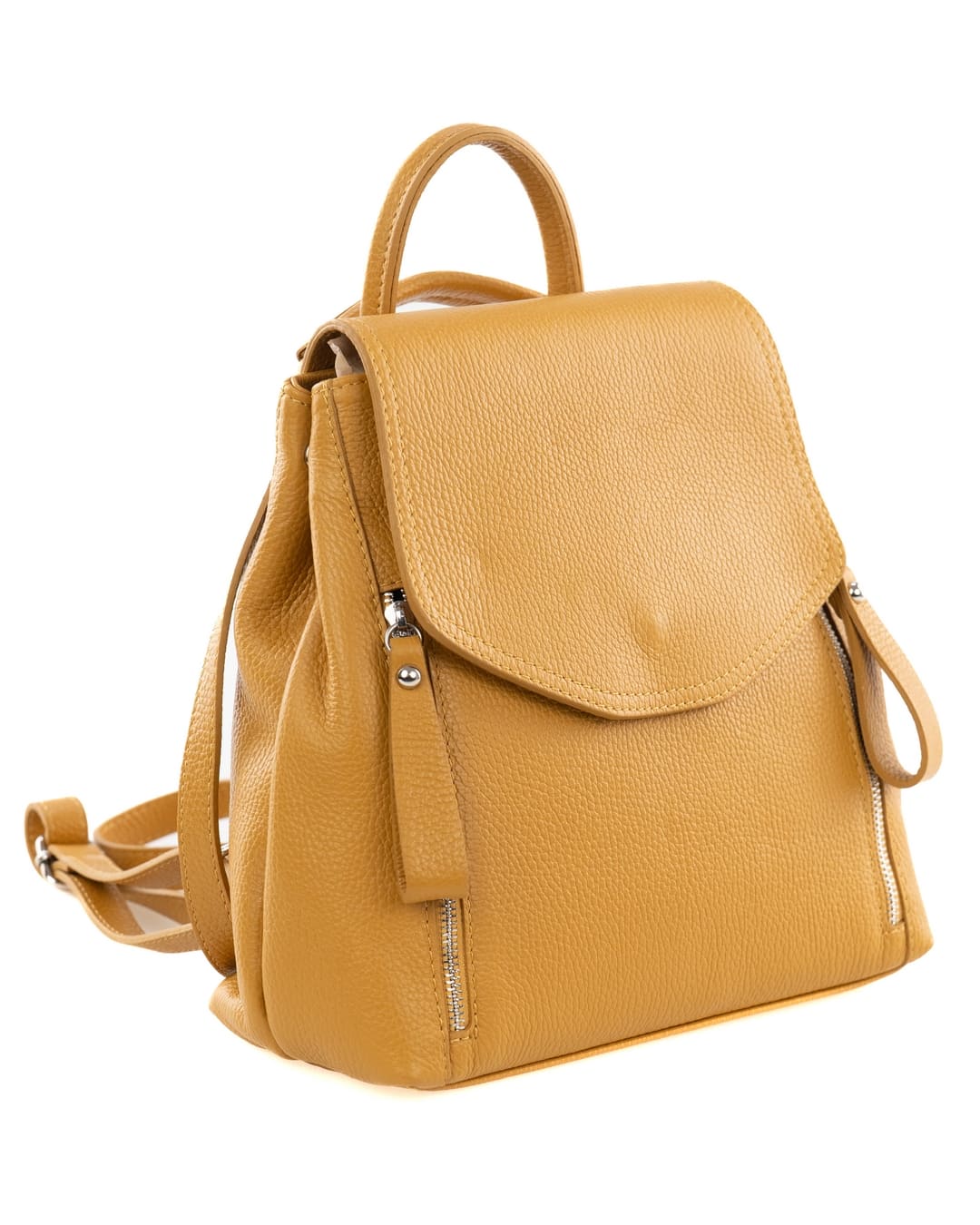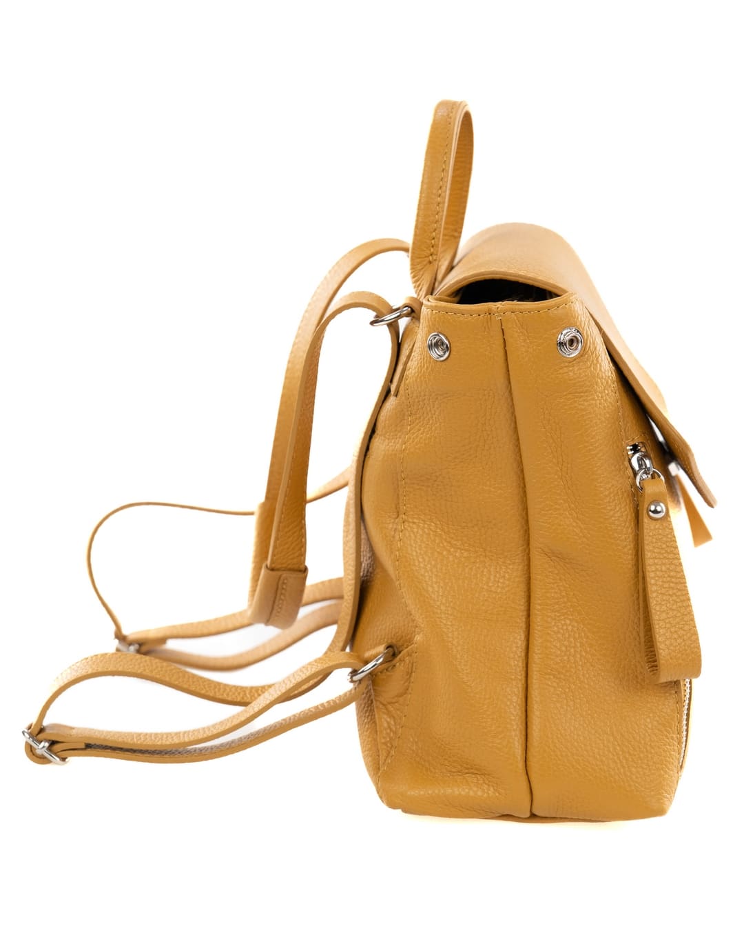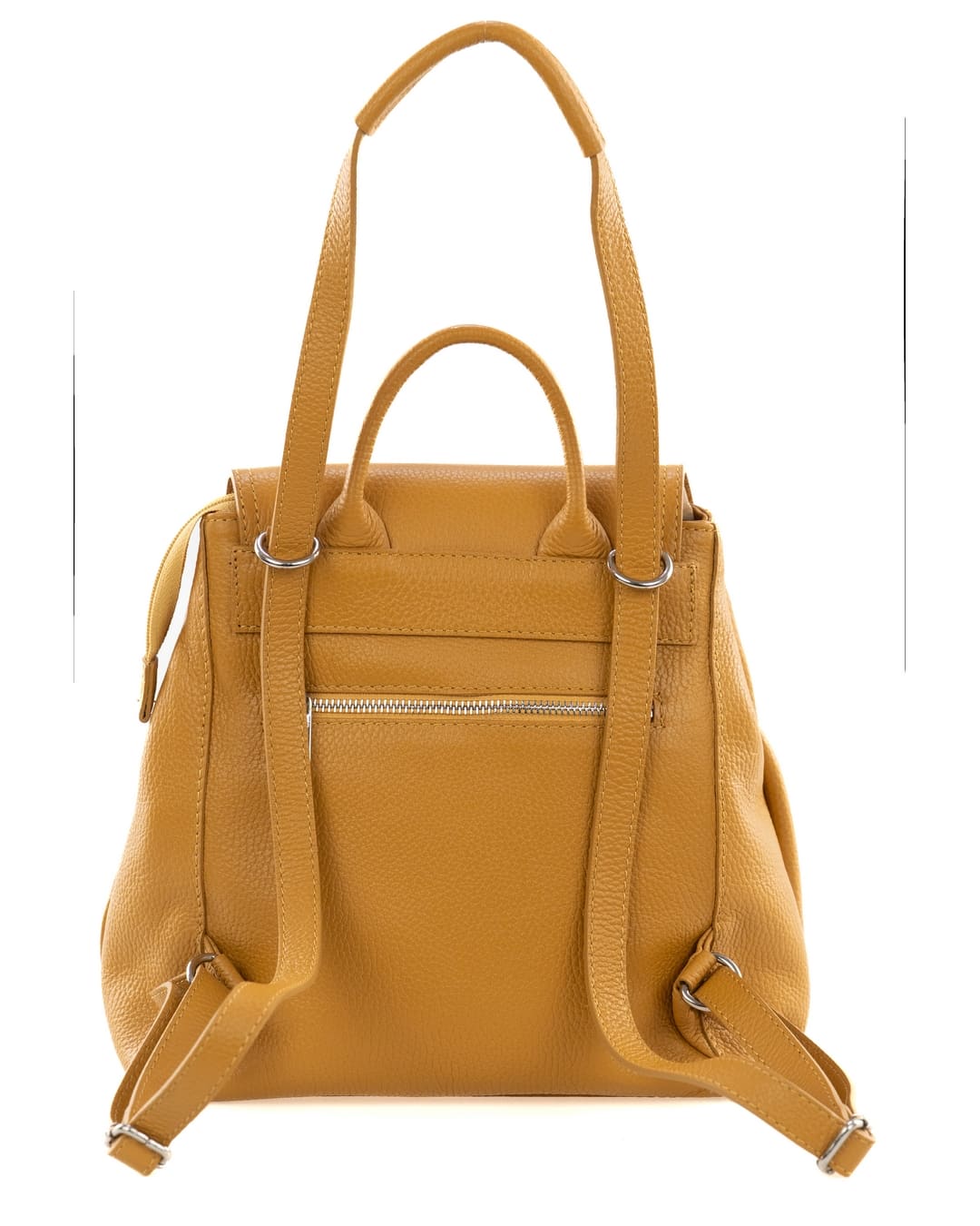 OLIVIA Zaino donna in vera pelle martellata senape con spallacci regolabili e tracolla trasformabile