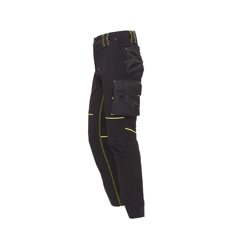 Dotato di numerose caratteristiche di design e funzionalità, questo pantalone offre una vestibilità Slim Fit, ideale per chi desidera un look moderno e aderente. Le tasche multifunzionali, inclusa una tasca laterale porta utensili e due tasche posteriori con chiusure di sicurezza, offrono ampio spazio per riporre gli strumenti di lavoro in modo sicuro e organizzato.