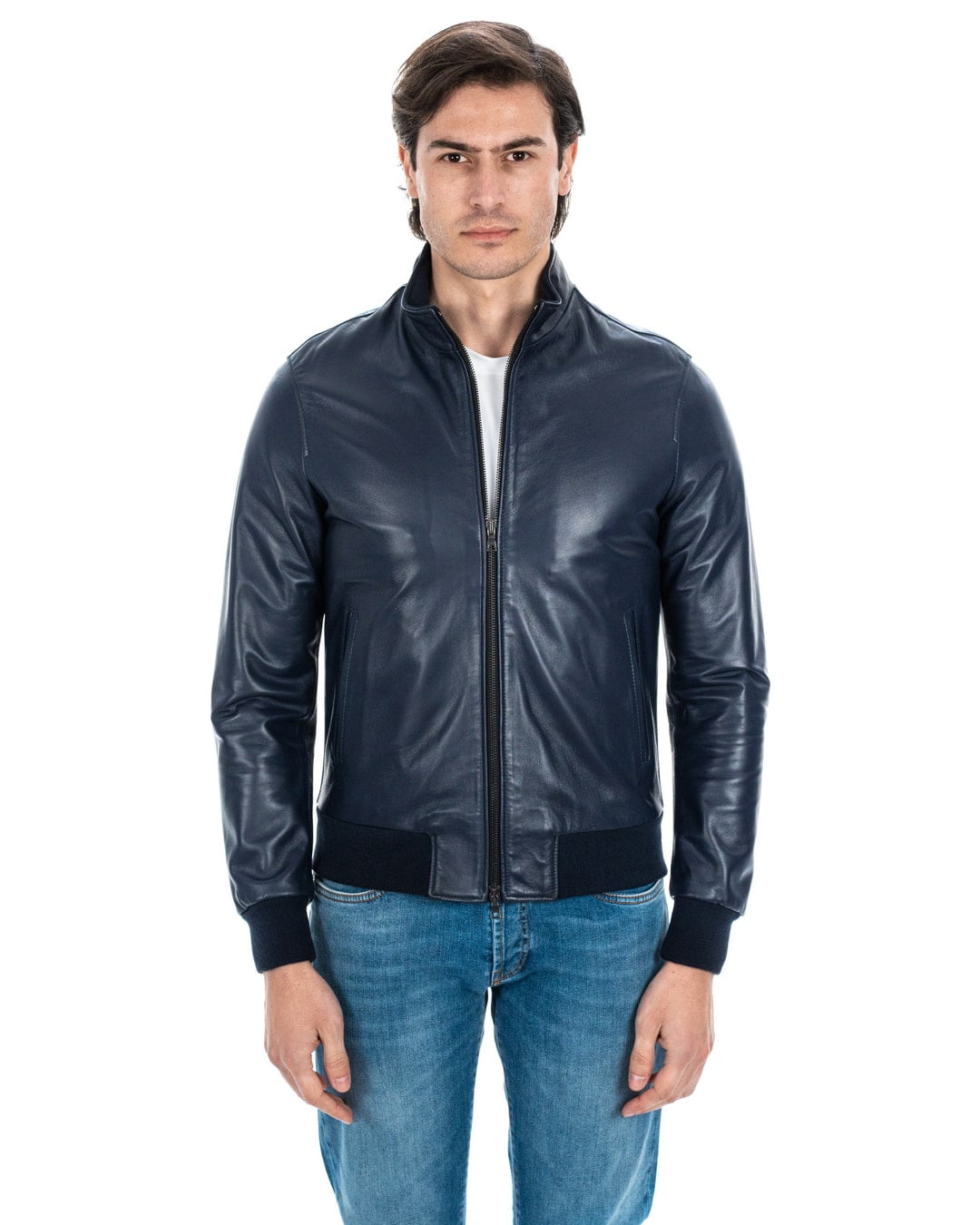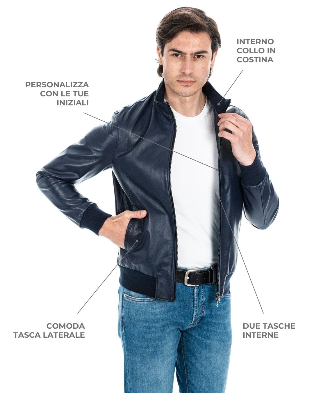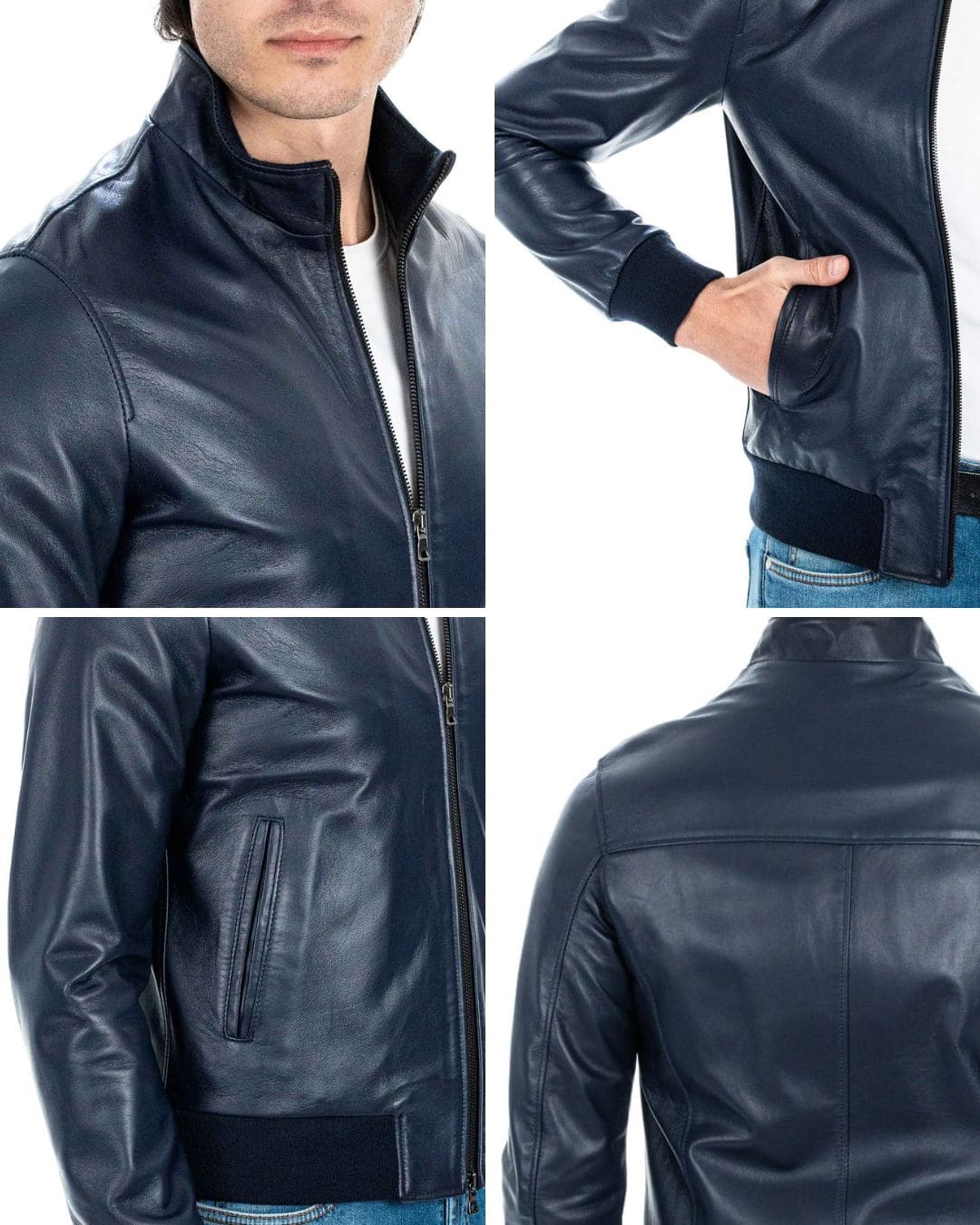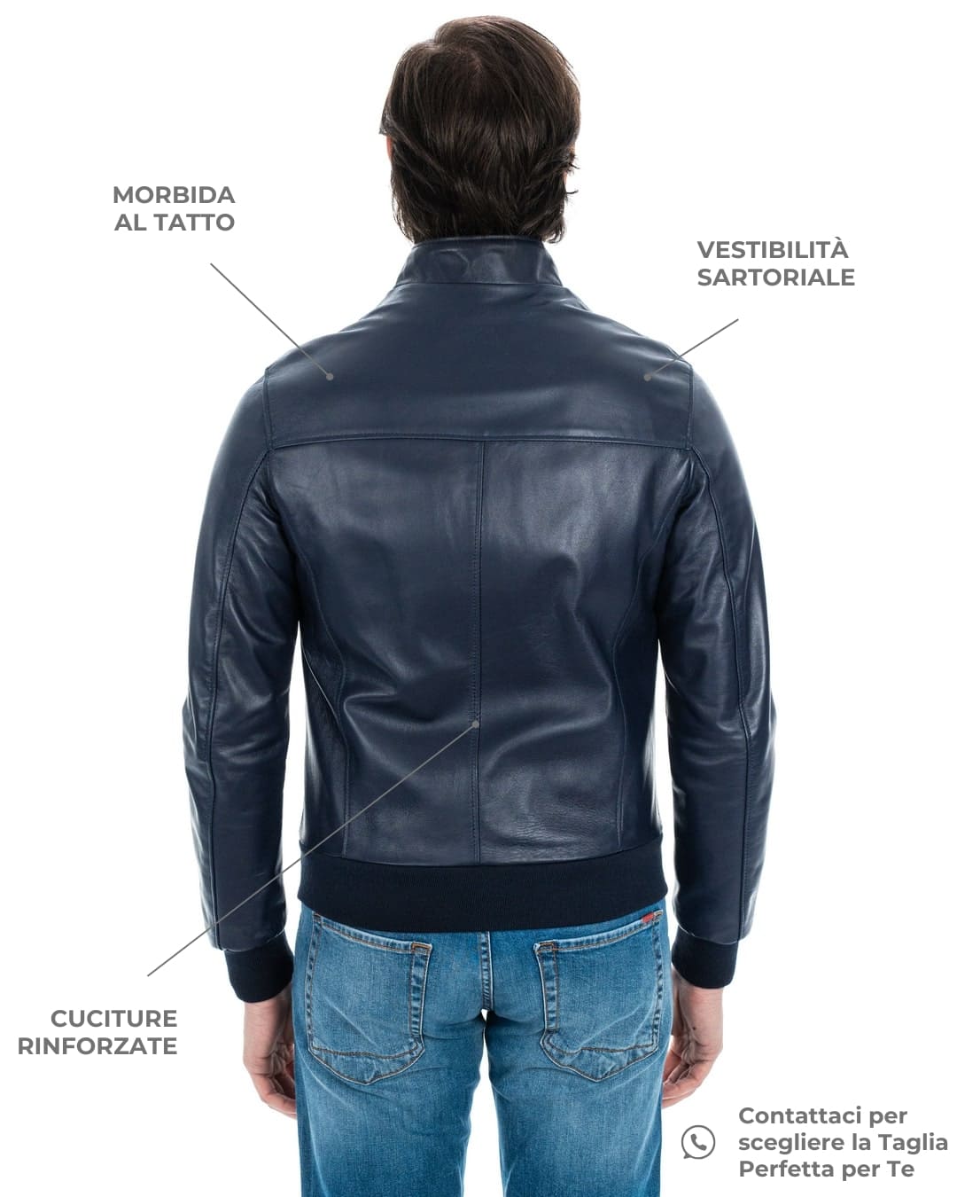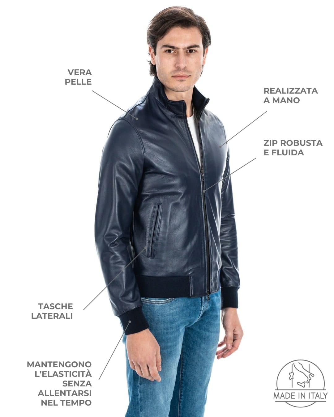 Giacca Bomber da Uomo in Vera Pelle Blu – Modello PHILIPH