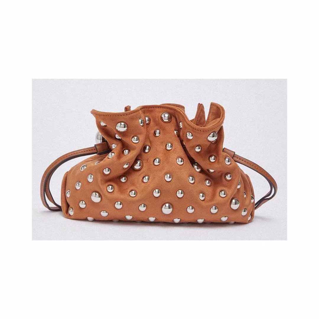 AGATHA Borsa a spalla in vera pelle martellata colore cuoio con manico intrecciato e tracolla