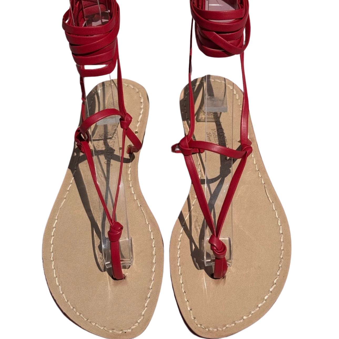 I veri sandali capresi, realizzati artigianalmente a Capri secondo la tradizione di Da Costanzo, storica bottega dell’isola. Questo modello a schiava in pelle è un’icona di eleganza mediterranea: essenziale, raffinato e senza tempo. Le sottili fascette si intrecciano intorno alla caviglia creando un gioco di linee che valorizza il piede con naturale sensualità. Realizzati interamente a mano, con suola in cuoio e pellami di altissima qualità, rappresentano la perfetta sintesi tra artigianato autentico e stile contemporaneo.