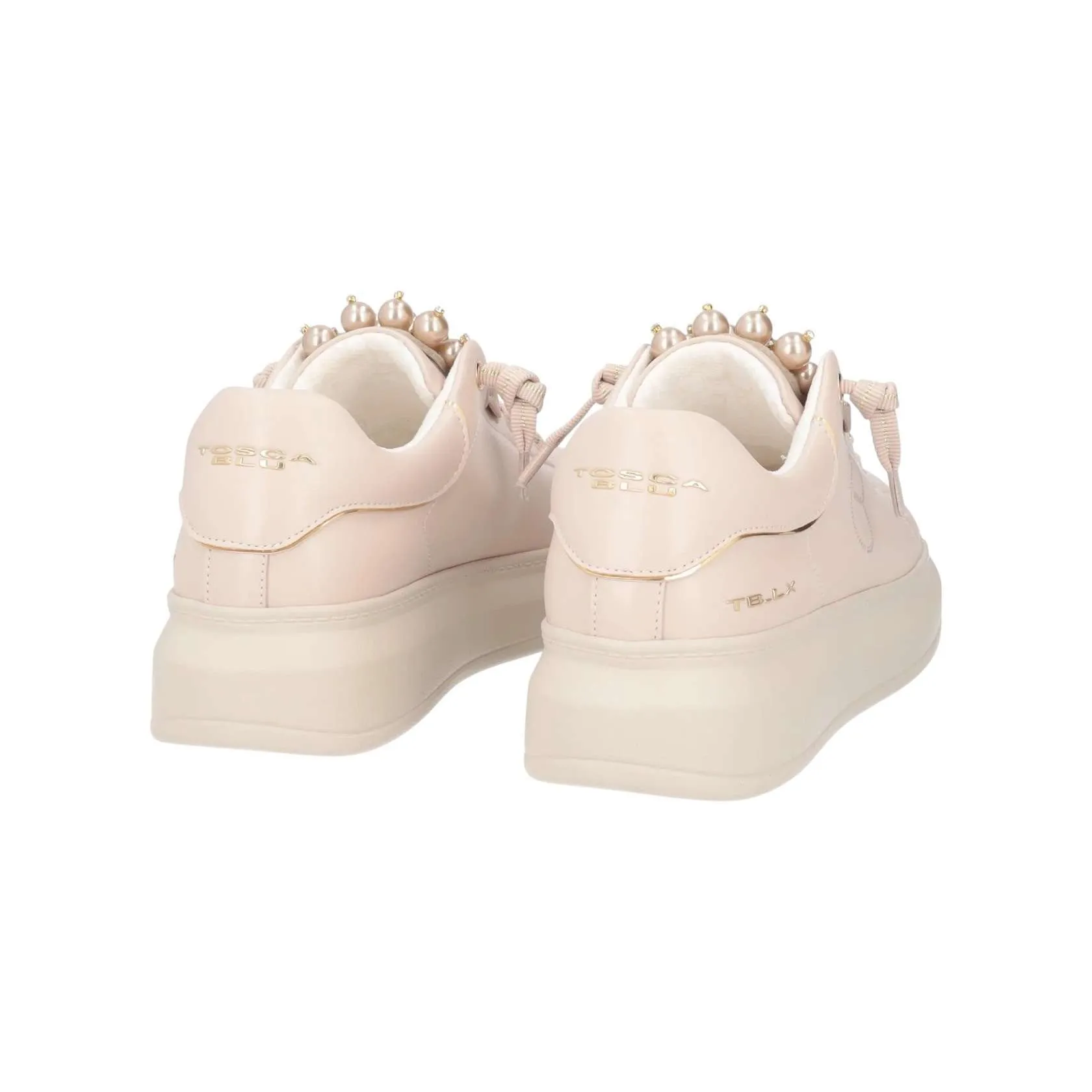 Sneakers Chic Tosca Blu con linguetta arricchita da perle, dettagli glamour che conquistano al primo sguardo. Con suola platform alta, imbottitura interna e monogramma traforato sul fianco è una sneaker in pelle ideale per chi ama distinguersi con gusto. Abbinala con qualsiasi outfit, dai jeans ai vestiti più formali.