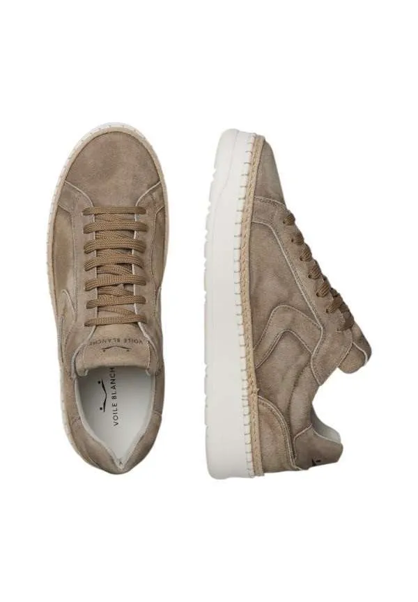 Sneakers Layton Voile Blanche in suede délavé con bordo in corda intrecciata. Logo stampato sul topponcino e fondo in EVA con costruzione a cassetta.