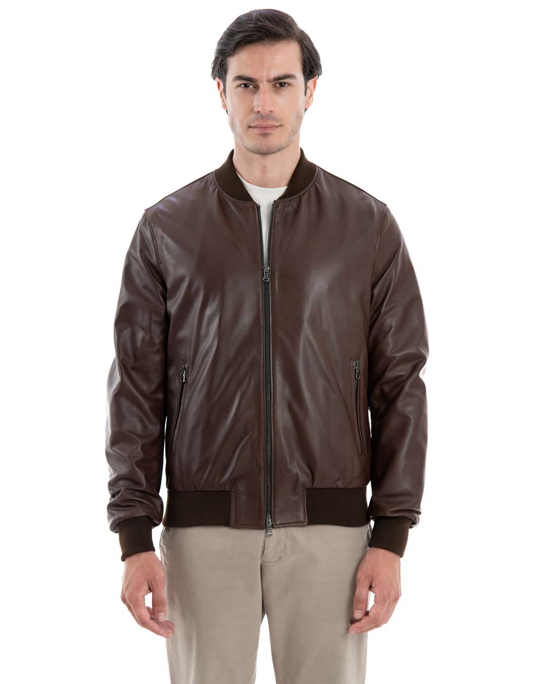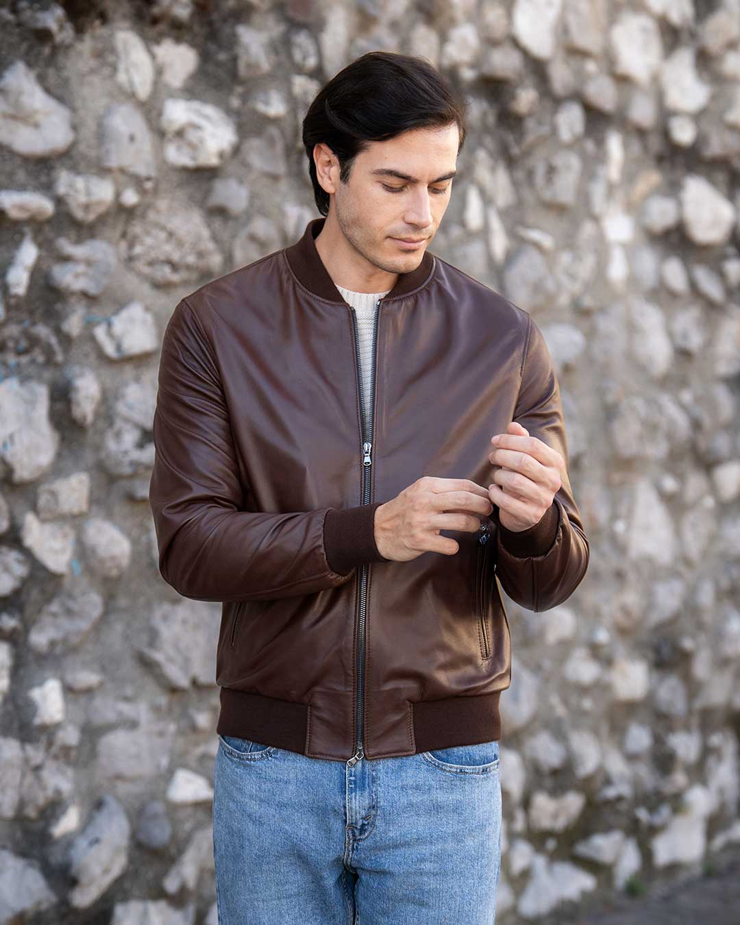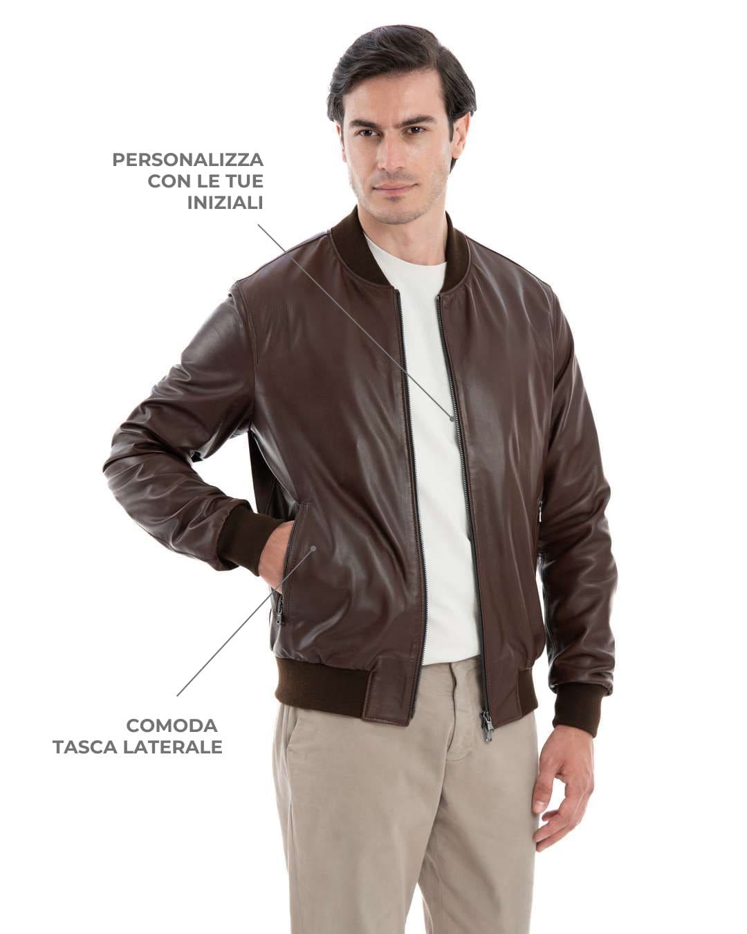 Scopri la nostra Giacca Bomber College da uomo in vera pelle marrone effetto tamponato, un capo realizzato artigianalmente in Italia con l’impiego dei migliori materiali. Questo bomber non è solo un indumento, ma un simbolo di stile e qualità che arricchirà il tuo guardaroba.