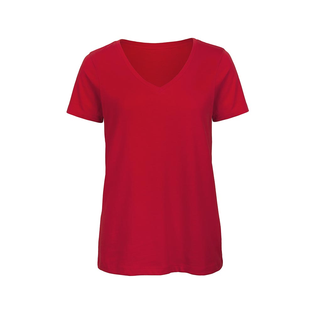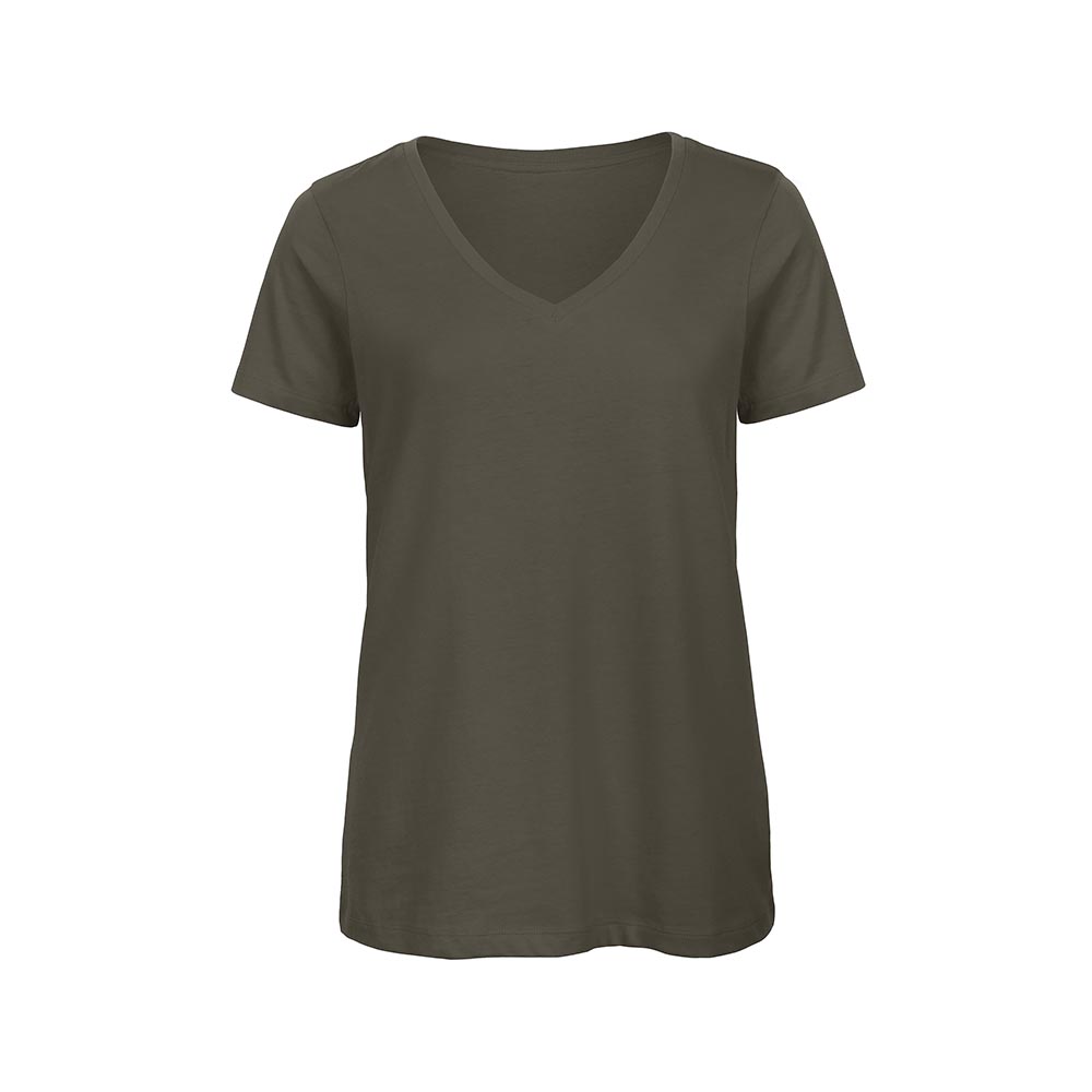 T-shirt donna B&C Peso: 140 gr/mq 100% cotone organico pettinato ring spun Collo a V Manica corta Tessuto spazzolato morbido e compatto