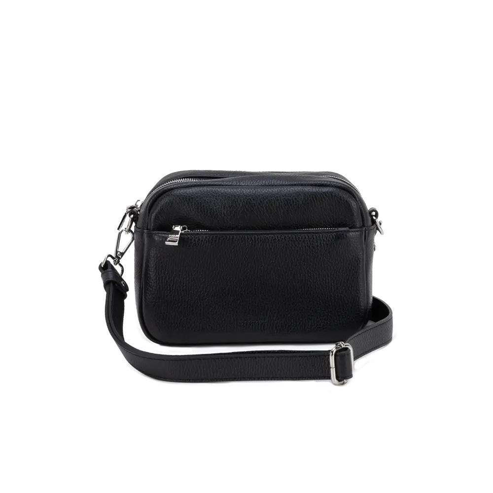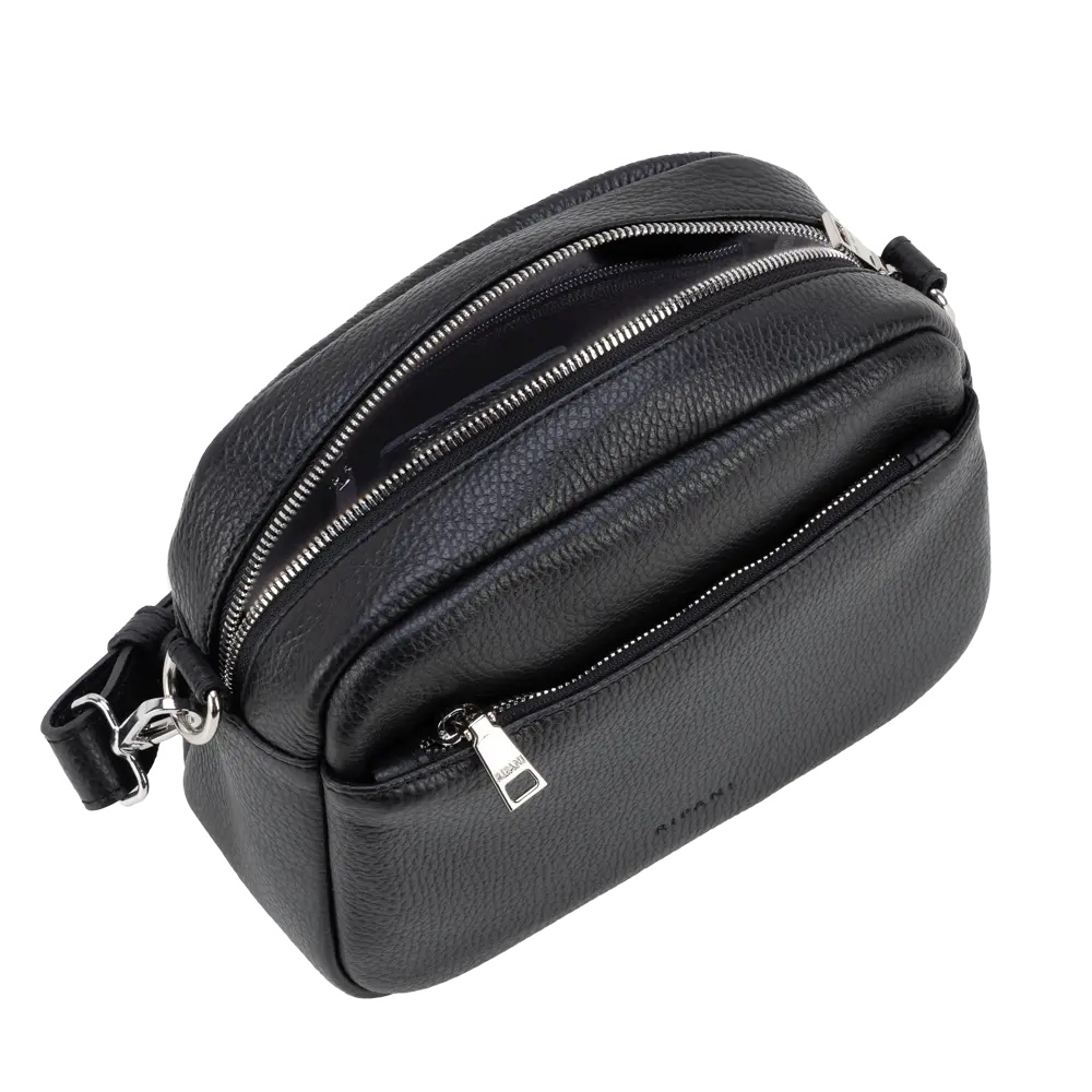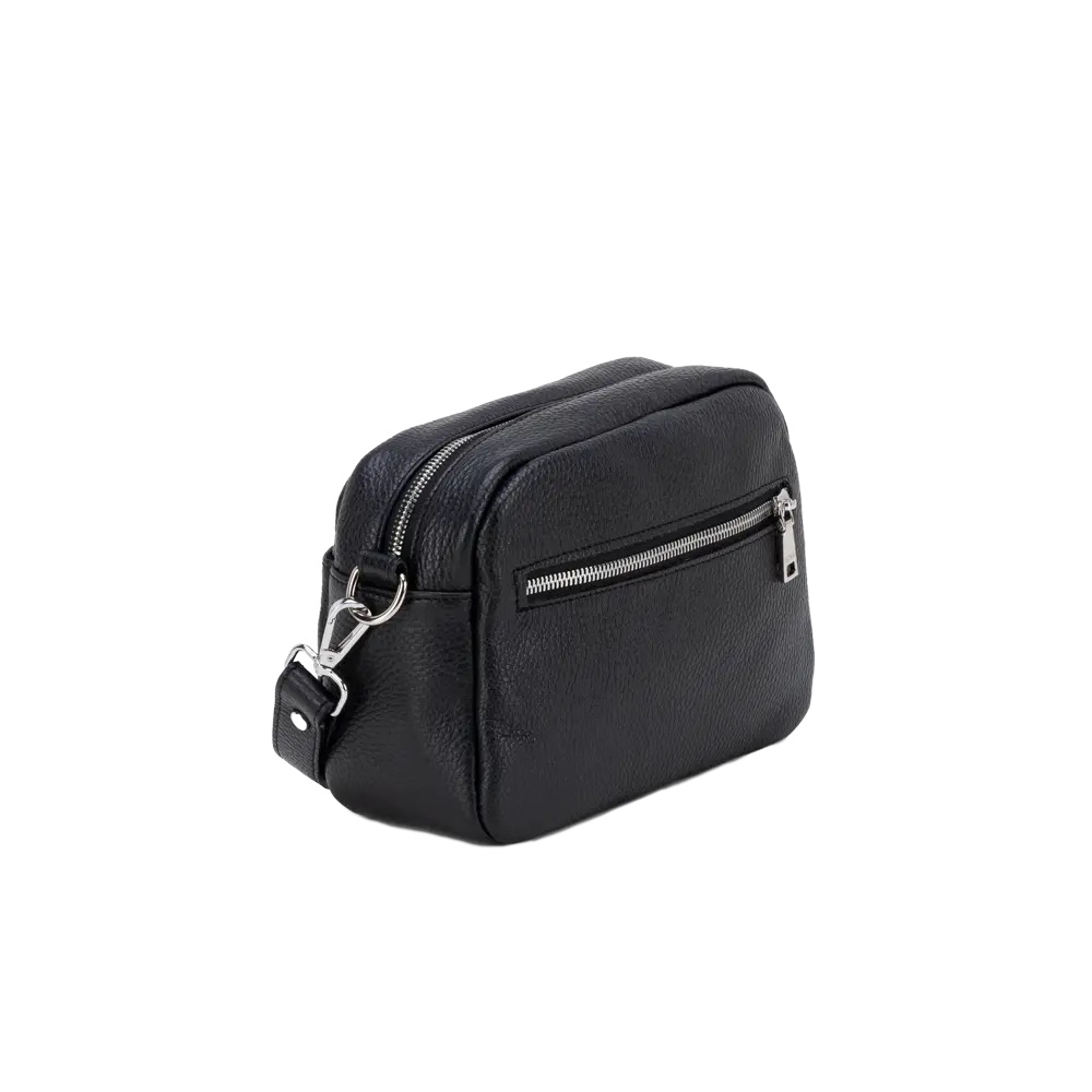 COLORE: Nero Doppio scomparto con chiusura zip, tracolla regolabile Vera pelle effetto cervo, Accessori nichel Dimensione 22 x 18 x 8cm (l x a x p)