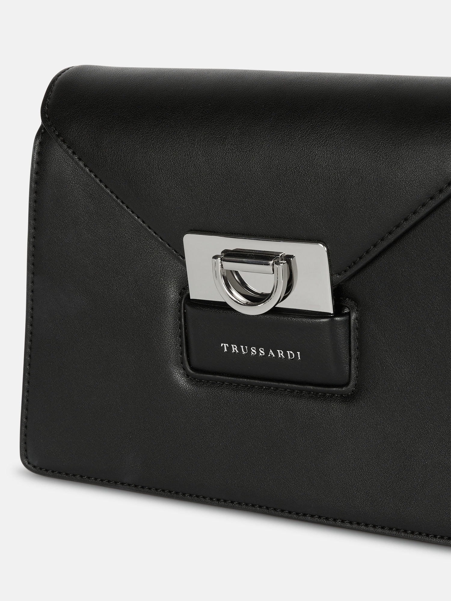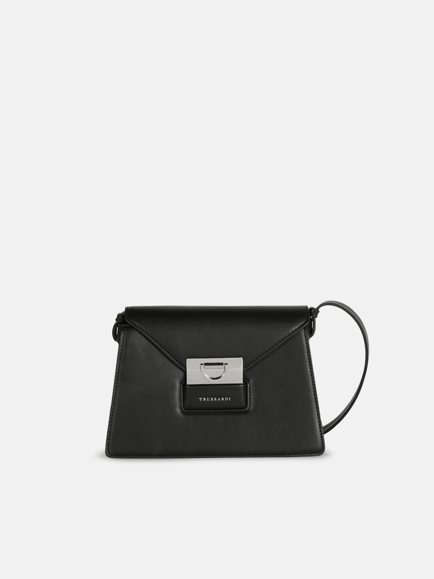 Borsa cross-body ivy con tracolla regolabile, realizzata in similpelle a tinta unita dalla texture liscia. Il modello è impreziosito da una placca in metallo color argento. Colore: nero