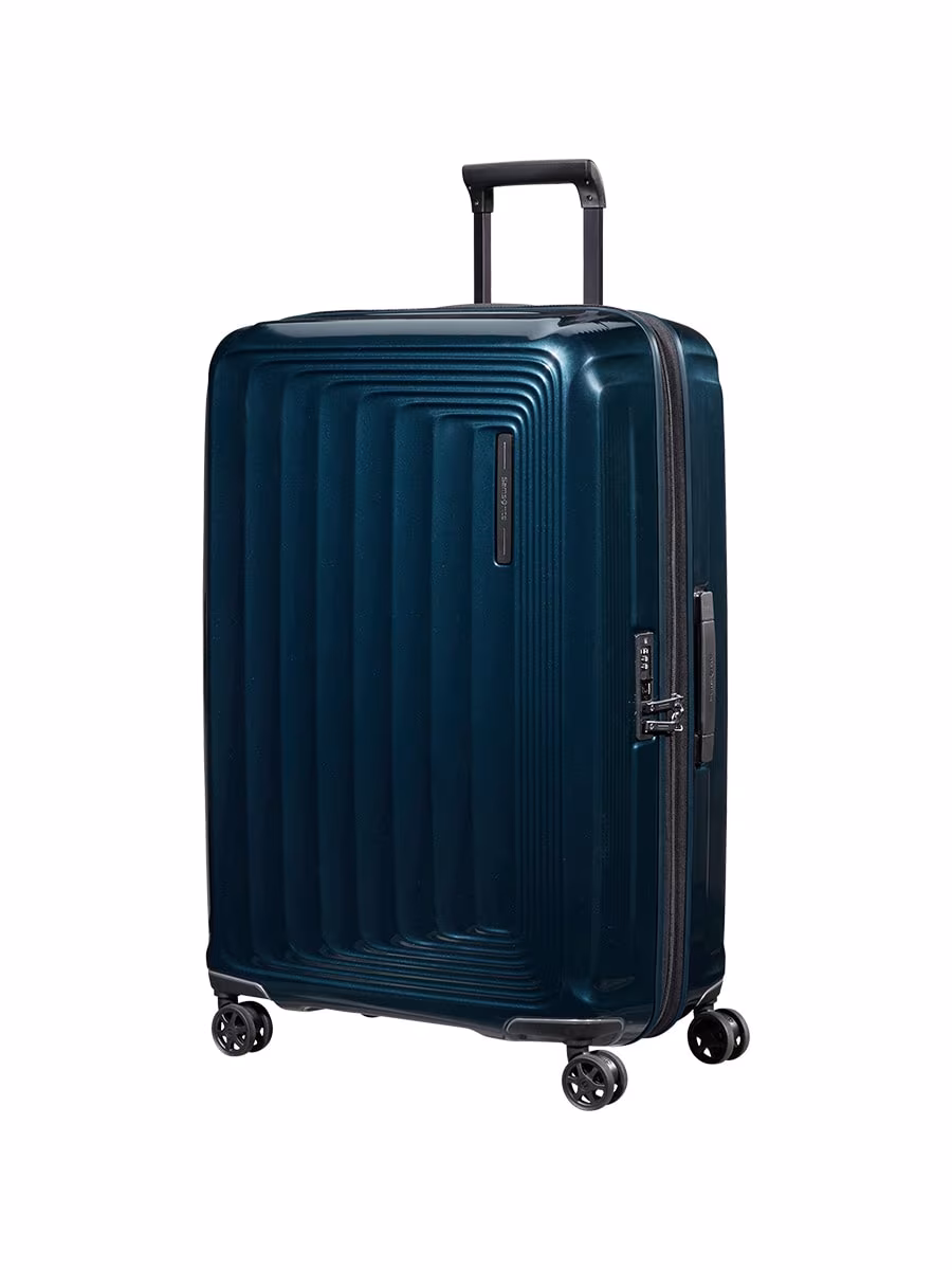 Il Trolley NUON 75cm di Samsonite, in Metallic Dark Blue, offre ampiezza e resistenza per i viaggiatori che non vogliono rinunciare a stile e praticità. Con un volume di 100/110 L, espandibile, dotato di chiusura TSA, ruote con sospensioni e una ben pensata organizzazione interna, rappresenta la scelta ideale per viaggi di lunga durata.
