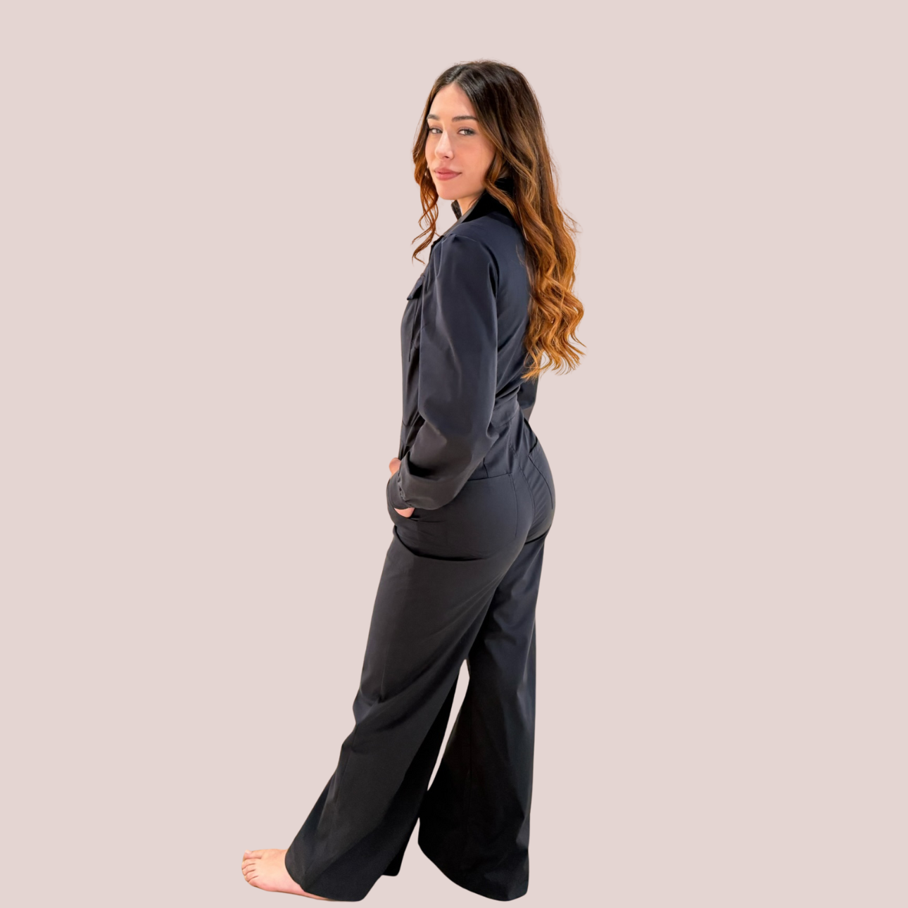 Una silhouette essenziale, ispirata all’estetica utility, si fonde con un’eleganza contemporanea e disinvolta. La tuta da aviatore in tessuto vela è l’incontro perfetto tra carattere e leggerezza: il taglio strutturato valorizza la figura senza costringerla, mentre la mano tecnica e fluida del tessuto la rende ideale per accompagnarti con stile in ogni momento della giornata. Il blu intenso esprime sobrietà e versatilità, mentre le tasche funzionali e la chiusura frontale con bottoni donano al capo un’anima pratica e autentica. Un pezzo che racconta l’artigianalità italiana nella cura delle finiture, nella scelta dei materiali e nella vestibilità impeccabile. Indossala…