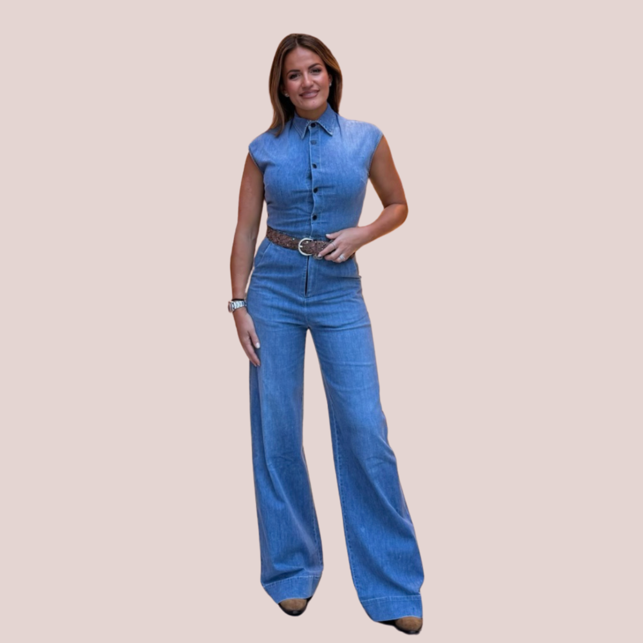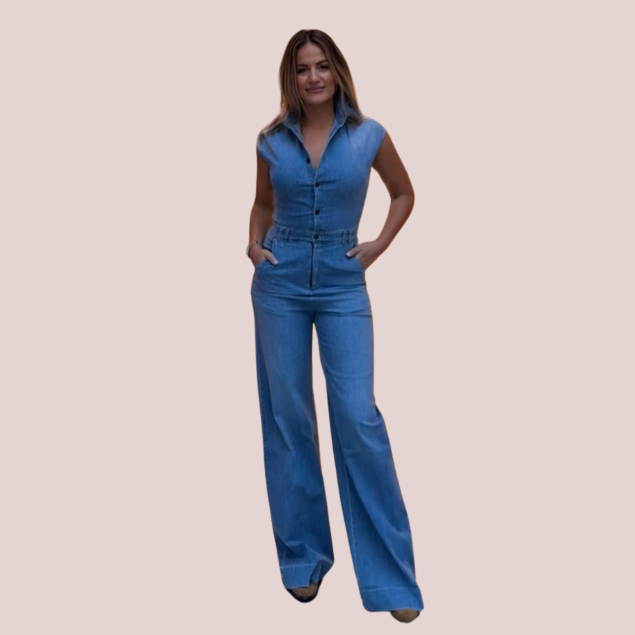 La tuta smanicata in denim celebra l’equilibrio perfetto tra femminilità e spirito contemporaneo. Realizzata in denim leggero e confortevole, avvolge la silhouette con linee pulite e una vestibilità impeccabile, valorizzata dalla chiusura frontale con bottoni e dal colletto strutturato. Un capo dal fascino deciso, pensato per una donna che ama distinguersi con naturale eleganza. Da indossare con cintura in vita per sottolineare le forme o con accessori essenziali per un look disinvolto ma sofisticato.
