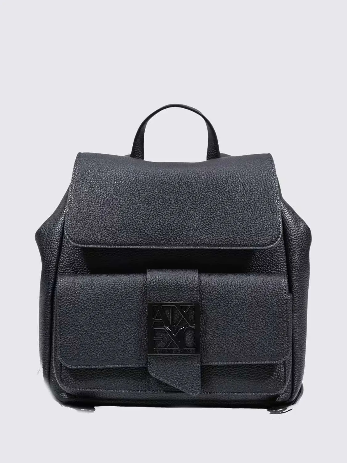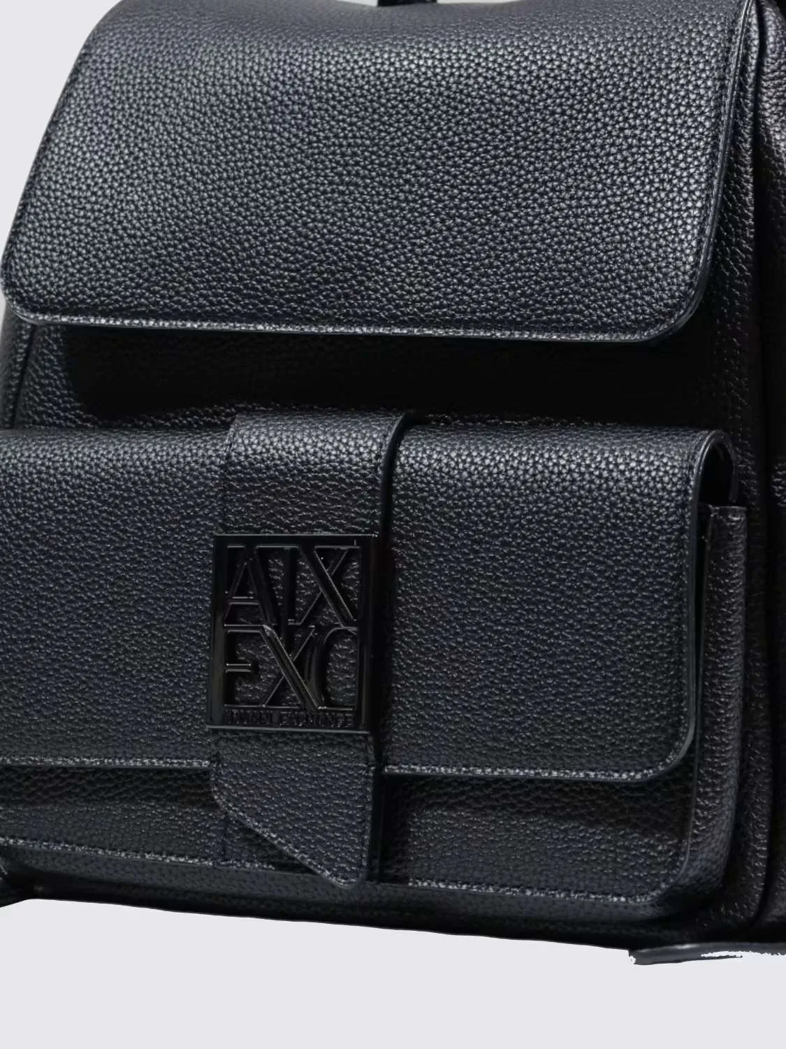 Zaino Armani Exchange effetto pelle martellata con logo frontale. Design elegante e moderno, compatto e capiente, ideale per lavoro e tempo libero.