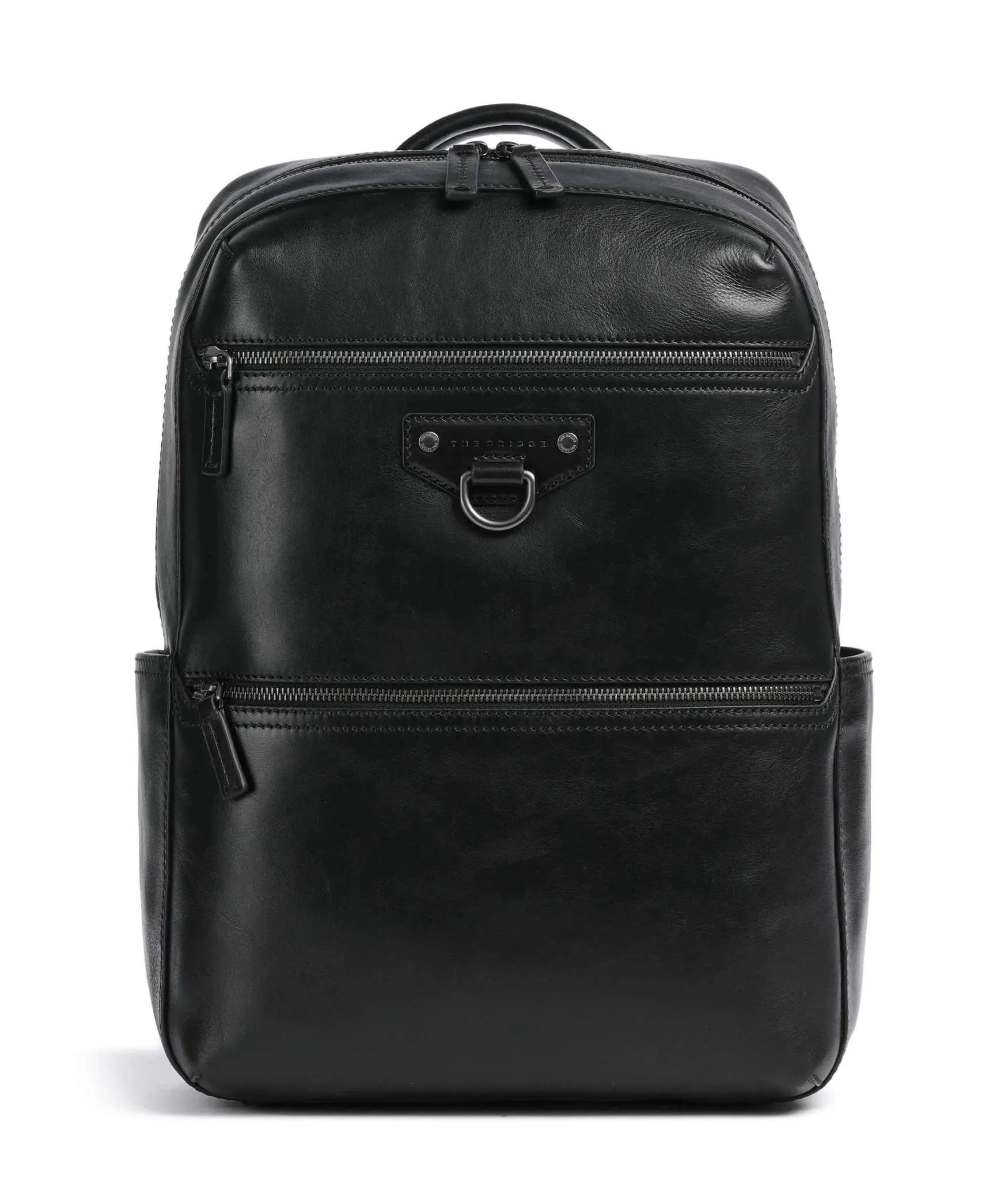 Zaino Iacopo The Bridge raffinato ed essenziale, in pelle nera di alta qualità combina eleganza contemporanea e praticità.