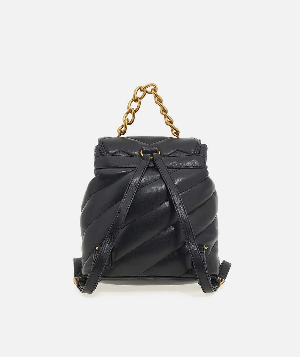 Zaino Puffy Rue Madam in morbida ecopelle con trapuntatura. Chiusura magnetica con orsetto e manico in catena effetto invecchiato. Spallacci regolabili e fodera interna in cotone con tasca.