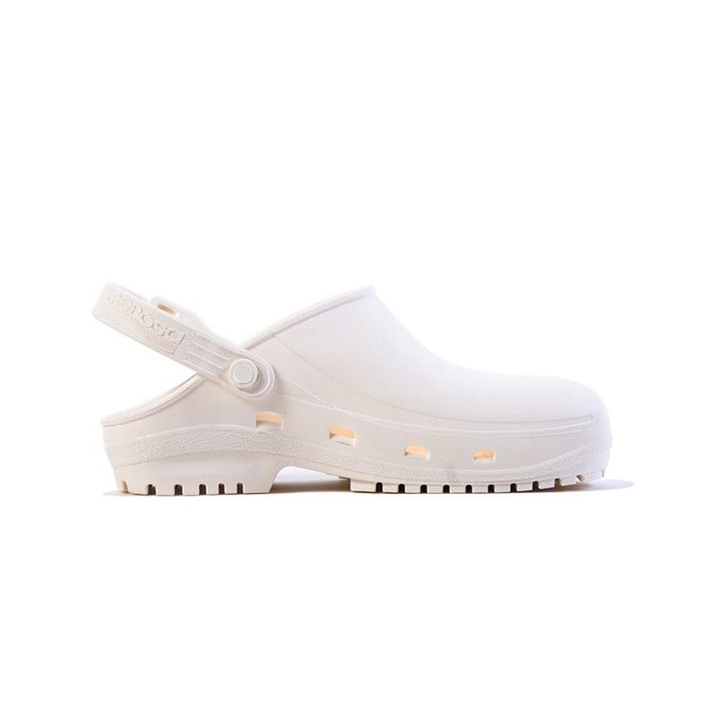 La tomaia con parte superiore chiusa previene infiltrazioni di sostanze organiche e potenzialmente nocive, assicurando una protezione costante per l’utilizzatore. Le finestre laterali, invece, permettono una ventilazione efficace del piede e facilitano il lavaggio in autoclave, mantenendo gli zoccoli freschi e puliti.